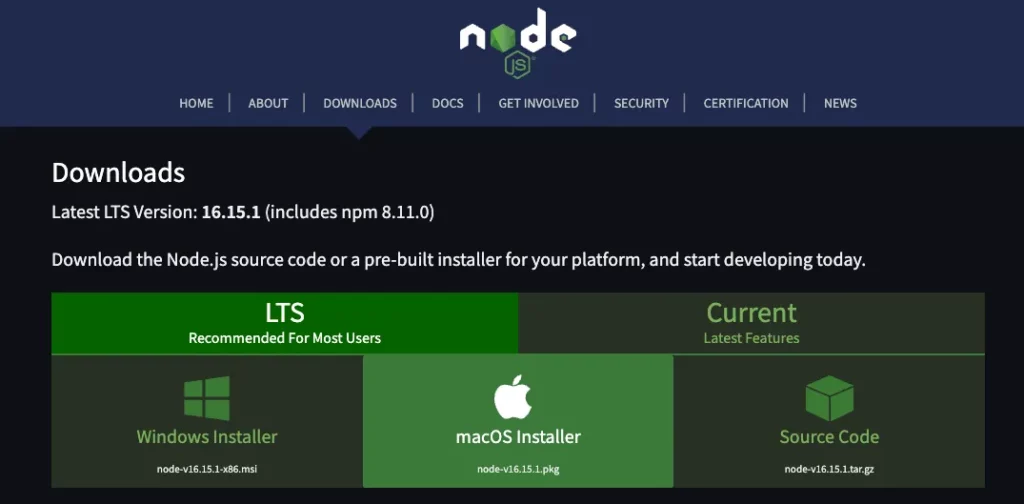 ただコンパイルするだけなら上記のNode.jsのサイトからインストールパッケージ.pkgをダウンロードしてインストールするのが一番簡単。SassのコンパイルのためだけならこれでOKです。